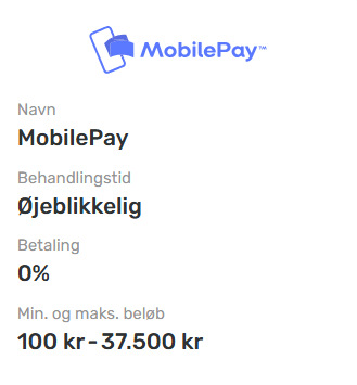 | Hurtige og nemme indbetalinger | Ikke alle casinoer understøtter MobilePay til udbetaling |